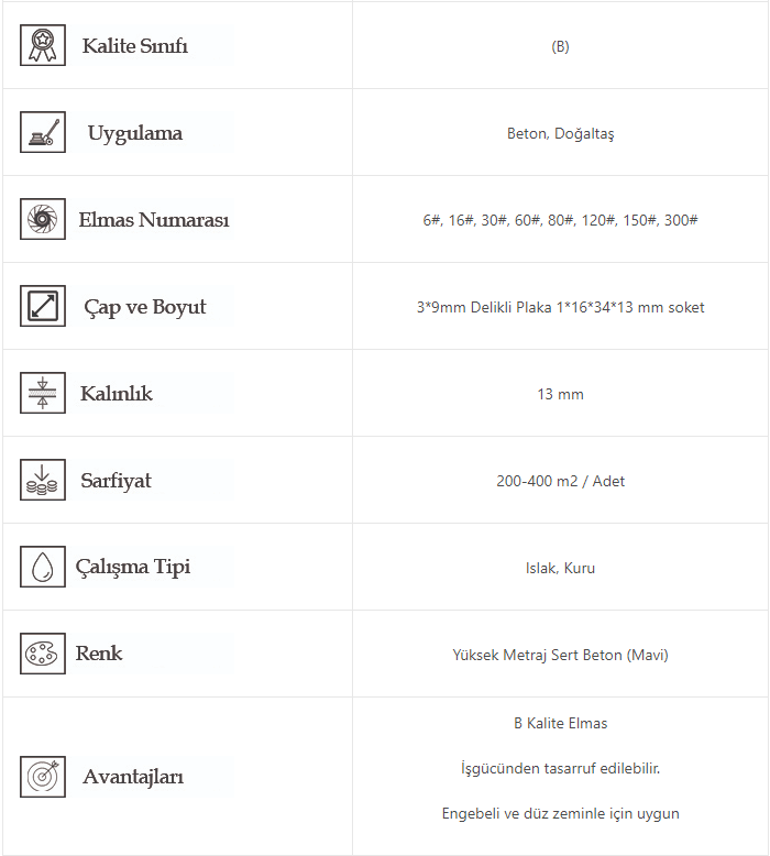 SLP-A1 Vvhf (30-60-120 Grit) Yüksek Metraj Metal Beton Silim Elması